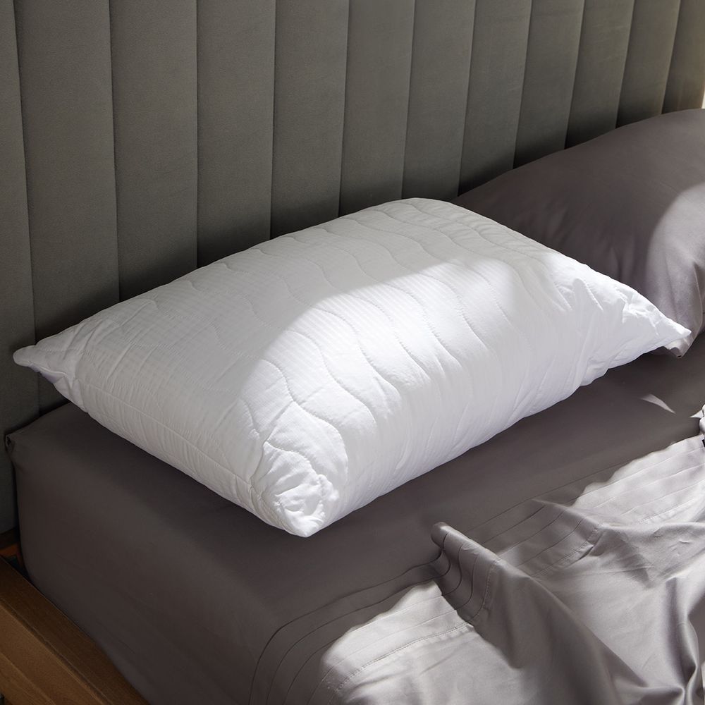 Almohada con forro en tela sateen stripe acolchado que aporta uniformidad al tacto y protege el relleno aumentando su duración, confort y frescura. Soporte suave para quienes duermen boca abajo la mayor parte del tiempo.