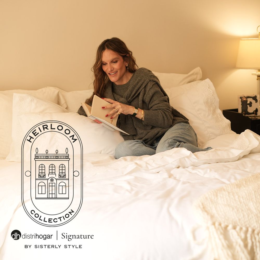 Elisa honra los recuerdos que nos habitan: piezas que evocan memoria, que decoran con alma. Heirloom es una propuesta donde las texturas nobles, los acabados envejecidos y los detalles íntimos nos conectan con lo que permanece. El juego de sábanas en tela de 300 hilos sateen plain, con alto contenido de algodón y delicados detalles bordados en ojalillo en cenefas de sobresábana y fundas, nos hablan de cuidado y tradición. Es una experiencia que conecta con los rituales que se heredan, con lo que se cuida y con lo que se vive pausadamente.