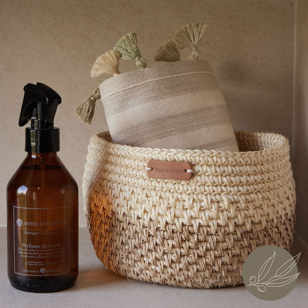 Nuestro Set incluye un canasto tejido en fique de 15 cms de diámetro, 1 toalla de manos 100% Algodón con cenefa con fibras de lino y borlas hechas a mano de 40 x 70 cm y un Perfume de Linos de 250 ml con notas de ámbar y cuero sobre una base maderosa herbal. Juntos, estos tres elementos crean el regalo perfecto: una combinación equilibrada entre lo artesanal y lo contemporáneo, ideal para sorprender a las personas más especiales!