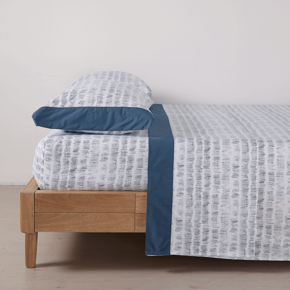 Renueva tu descanso con la frescura natural del algodón y un moderno diseño geométrico. Nuestras sábanas de 200 hilos 100% algodón ofrecen suavidad incomparable y transpirabilidad, perfectas para noches de descanso profundo. Su diseño miniprint aporta un toque sobrio y elegante a tu dormitorio, combinando estilo y confort en cada detalle.