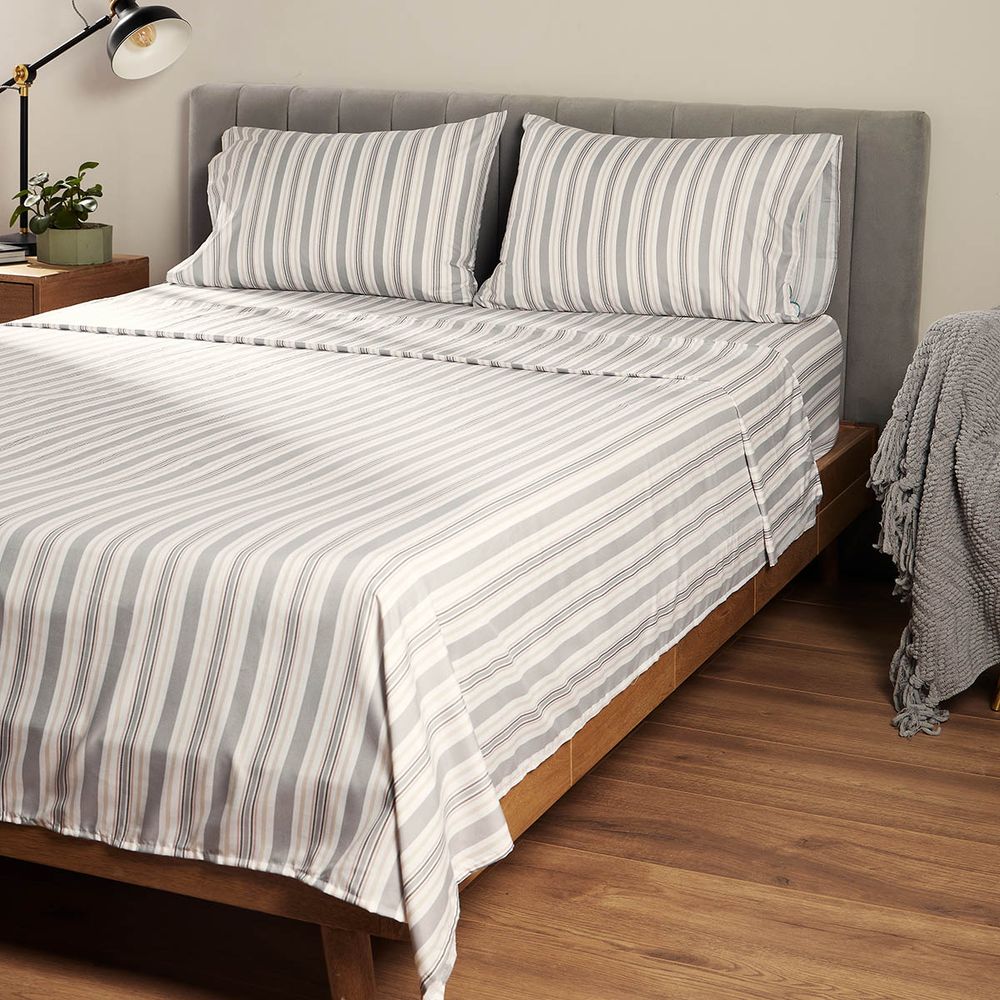 Juego de Sábanas en microfibra que combina un estampado neutro y sobrio con una textura super suave y acogedora. La microfibra es resistente y de fácil cuidado. Nuestras sábanas se lavan y secan rápidamente, manteniendo su color y forma tras múltiples lavados. Renueva tu espacio y disfruta noches de color y confort.