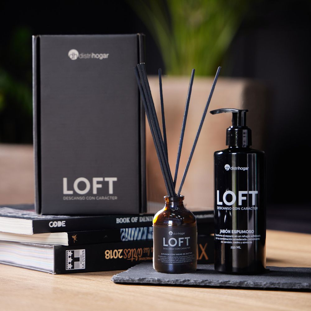 Set Loft: Jabón Espumoso 250 ml y Difusor varas Rattan 50 ml